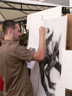 | Il mio cavallo sono io" di Marco Calosci Questo il titolo della performance estemporanea che si tiene all'Ippodromo di Tor di Valle il 7 ottobre 2007, in occasione del 80° Derby Nazionale del Trotto, in cui un gruppo di studenti romani, ispirato e coordinato dalla Prof. Anna Savelli, creerà dinanzi al pubblico immagini pittoriche ispirate al cavallo. Il titolo scelto spiega il significato che noi giovani intendiamo dare all'evento: " Il mio cavallo sono io " è l'ultimo verso di un antico canto navajo, che esalta il fortissimo legame tra l'equino ed il suo proprietario, delineando un rapporto che rimanda all'identificazione stessa del bipede nel quadrupede. Che senso avrebbe avuto Don Chisciotte su di un possente cavallo bianco o Napoleone sopra un ronzino? Quello che risulta essere uno dei temi iconografici preferiti dal paleolitico fino all'arte contemporanea, è una creatura completa nel suo essere anatomicamente perfetto e vitale, ma è anche lo specchio del proprio cavaliere, non ché il suo completamento. La prova dei ragazzi sarà proprio questa: riuscire a rappresentare di questo nobile animale l’aspetto che ognuno ritrova più vicino a se stesso, una raffigurazione libera, sui supporti e sui materiali più variegati, affinché tutti possano delineare un’ immagine adeguata alla propria “idea” del cavallo. ![]() La bellezza del tema specifico risiede nel fatto che esso permette una grande libertà rappresentativa: ecco perché useremo diverse tecniche pittoriche ed anche i writers potranno esprimersi nel modo a loro più congeniale, riciclando ciò che non ha più utilità e donando ad esso dignità e valore estetico. Ripescando, infatti, nei magazzini dell’Ippodromo è stata selezionata una quantità di materiale il più vario, dalle lastre di metallo ai resti di lampioni, dai soppalchi alle ruote di vecchi sulky, tutti oggetti in disuso che potranno riacquistare con la ridipintura dei giovani un senso nuovo ed una piacevolezza estetica, lasciando spaziare l’estro fantastico di chi vorrà sentirsi “aspirante artista” per un giorno, in un'occasione per noi più unica che rara. I giovani che hanno deciso di accettare questa sfida costituiscono un gruppo variopinto, accomunato dalla passione per l'arte e dagli studi effettuati in uno stesso liceo artistico romano: riuniti da esperienze comuni, intrise di opinioni ed ideologie diverse, parteciperanno in diretta alla realizzazione di lavori legati dallo stesso tema, ma che esprimeranno il differente approccio che ciascuno ha con l’idea del cavallo. Ci sentiremo così più vicini a questo splendido animale, immedesimandoci nel suo spirito libero e nella sua dinamica corsa nella vita. ![]() |