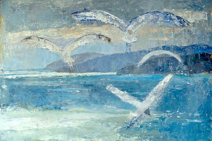 Due gabbiani, mare e cielo
