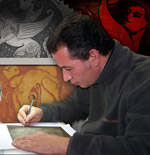 Erede della grande tradizione incisoria europea, Usama Saad, coniugando passione, abilità tecnica e sensibilità artistica, realizza acque forti e acque tinte che sono un felice esempio di sincretismo culturale. Prelevando dal suo Paese d’origine, l’Egitto, elementi aniconici, scritture coraniche, gusto decorativo, e assumendo dal linguaggio occidentale il valore della forma, le cui suggestioni spaziano dal gotico al Rinascimento per giungere alle Avanguardie del ‘900, Usama ha ideato un’iconografia caratterizzata da una personalissima contaminazione estetica. Un linguaggio alchemico, il suo, che articola evocazione e invenzione, che raccoglie e decifra gli echi multiformi del suo passato culturale e li sintetizza, collegandosi alle fonti dell’immaginario collettivo, con una visionarietà di gusto surrealista. Figure umane e animali fantastici, idoli misteriosi e simboli esoterici (come l' occhio di Ra!) si armonizzano nelle sue opere grafiche in un crogiolo di forme in cui la mente spesso si smarrisce nel desiderio di decifrare metafore, di individuare rimandi estetici o messaggi criptici. Un universo di immagini enigmatiche, quello inciso dall’Artista, caratterizzato dalla sorpresa del prodigio e definito da una linea energica che, addentrandosi nella sfera complessa della psiche, racconta storie antiche e fobie contemporanee, rivisita miti, leggende, testi sacri, avvalendosi delle inquietanti presenze del mondo onirico. Usama traduce con intenso pathos i suoi stati d’animo di cittadino della terra e attraverso visioni pregne di bellezza, come gli eleganti ippocampi fluttuanti nelle acque di un Mediterraneo culla e ispiratore di tutte le più affascinanti civiltà, egli testimonia la ricchezza figurativa che nasce dalle interferenze fra differenti culture. |