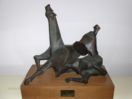 Ugo Cossu, Cavallo e cavaliere, terracotta patinata, 1993