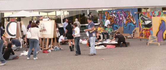 performance di pittura all'aperto di giovani studenti romani a cura di Anna Savelli |