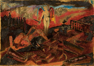 | La mostra “Nino Giammarco. Labirinti dell’anima”, ospitata dalla Soprintendenza al Polo Museale Romano nel Museo Nazionale di Castel S. Angelo, sala delle Colonne, che si svolge dal 4 aprile al 29 aprile 2007, espone la più recente ed inedita produzione dell’artista Nino Giammarco, che consta di 45 opere circa, tra oli, sculture e tecniche miste su carta. L’esposizione, patrocinata dall’Assessorato alle Politiche Culturali del Comune di Roma, dalla Provincia di Roma, dalla Regione Abruzzo e dall'ENAP, si articola attorno alla tematica della guerra e dei suoi disastri, proponendo gli effetti devastanti di stragi, distruzioni e migrazioni di popoli, ma soprattutto traducendo figurativamente le ferite interiori ed il disorientamento degli individui di fronte agli orrori commessi dall’uomo, il quale sembra avere smarrito ogni sentimento di solidarietà verso i propri simili, come dimostra ampiamente la storia dei tempi in cui viviamo. Nelle opere dell’artista una marea brulicante di esseri indistinti vaga attraverso percorsi labirintici ed impervi, fuggendo senza meta: ne scaturisce l’immagine delirante di un’umanità priva di consapevolezze e di ideali, apportatrice di morte e di catastrofi. Fortemente espressionista e simbolica, quella di Giammarco è arte di denuncia e di provocazione, che intende richiamare l’uomo ad un’indagine entro se stesso, nei labirinti dell’anima e nelle proprie inquietudini, affinchè possa ritrovare verità più durature e spirituali. Dalla ferocia brutale del segno e dalle tinte esplosive nasce, infatti, uno shock visivo: la follia bestiale che pervade le menti umane si esprime in scenari biblici, in paesaggi devastati di un mondo in bilico tra realtà e visionarietà. Riferimenti colti alla tradizione della pittura europea, dal Rinascimento all’età barocca, echi delle avanguardie storiche, come la Metafisica ed il Surrealismo, richiami a temi goyeschi e picassiani, si fondono in un’originale iconografia, pregna di elementi crudi e drammatici, ma anche addolcita da figure di angeli giustizieri o vivificata dalla consuetudine con le immagini del mito classico. Le sue opere, contraddistinte da violenza cromatica e da dinamismo di forme, testimoniano l’impegno dell’artista, sempre attento ad approfondire le tematiche sociali più urgenti e seriamente proiettato alla riconquista di una dimensione etica dell’esistenza. La mostra di Nino Giammarco si pone, dunque, come evento stimolante, sia per l’indubbia attualità dei contenuti, sia per la ricchezza inventiva delle immagini, supportata dall’impiego di diverse tecniche pittoriche e scultoree, frutto della comprovata esperienza dell’artista, sensibile esponente del mondo dell’arte da quasi quaranta anni. Pittore, scultore, scenografo, Nino Giammarco è nato a Sulmona nel 1946; dopo essersi diplomato in scenografia all’Accademia di Belle Arti di Roma, inizia una brillante carriera artistica, fin dagli anni ’60 e ’70, quando partecipa ai movimenti della Pop art italiana, rivelando una spiccata personalità. Espone nel ’77 alla XXXVII Biennale di Venezia e da allora si susseguono ininterrottamente mostre personali, nazionali ed internazionali (Berlino Est, Madrid, New York, San Juan de Puerto Rico), performances, installazioni urbane (Volterra, Terni, Gubbio, Madrid, Roma) ed esposizioni collettive, a testimonianza dell’attività di un artista mai pago di ricercare e di esprimere il proprio mondo interiore. Già docente di Discipline pittoriche al IV Liceo Artistico “A. Caravillani” di Roma, elogiato nel tempo dalla critica più autorevole (A. Del Guercio, E. Crispolti, D. Micacchi, M. Perez Lizano, D. Guzzi), Giammarco ha elaborato un linguaggio figurativo che esprime il dramma costante della storia umana, fatta di soprusi e di atroci crudeltà, ma anche di mistero, di enigmi e di speranza. La mostra gode del sostegno di Caripaq e di ENAP; della sponsorizzazione tecnica di: Le Vigne del Lazio, Istituto Istruzione Superiore “via Domizia Lucilla” (sez. Alberghiera), Dynofluid e Calvi legnami. La mostra è a cura di Bruna Condoleo; il progetto, la direzione ed il coordinamento tecnico-scentifico dell’allestimento di Carla Augenti , il progetto grafico di Davide Franceschini, la fotografia delle opere in mostra di Claudio Abate. La compagnia assicuratrice è Area Brokers. L’organizzazione e il coordinamento generale è dell’Associazione Artes Faveo www.artesfaveo.com - studio@artesfaveo.com . Ufficio stampa: Daniela Ruzzenenti - danielaruzze@tiscali.it Il catalogo è edito De Luca Editori d’Arte ed il testo critico è a cura di Bruna Condoleo. |