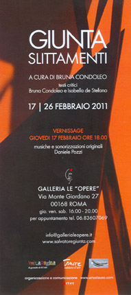 Presenta: SALVATORE GIUNTA "Slittamenti" Via di Monte Giordano 27, 00186 Roma 17 - 26 febbraio 2011 a cura di Bruna Condoleo |