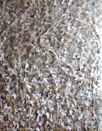 materiale, il più vario, s’ intreccia in trame fitte di fili